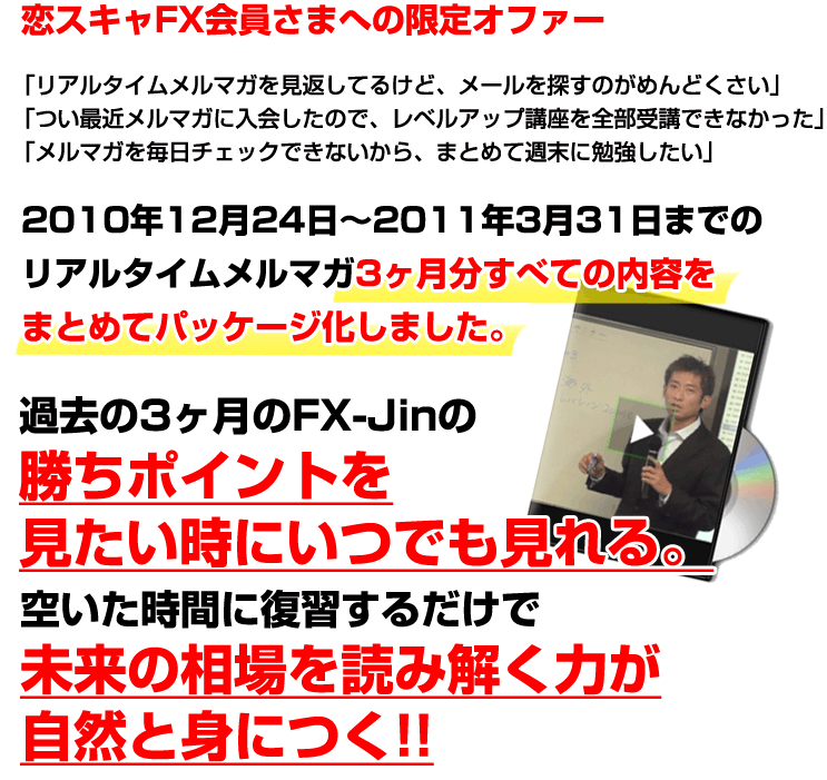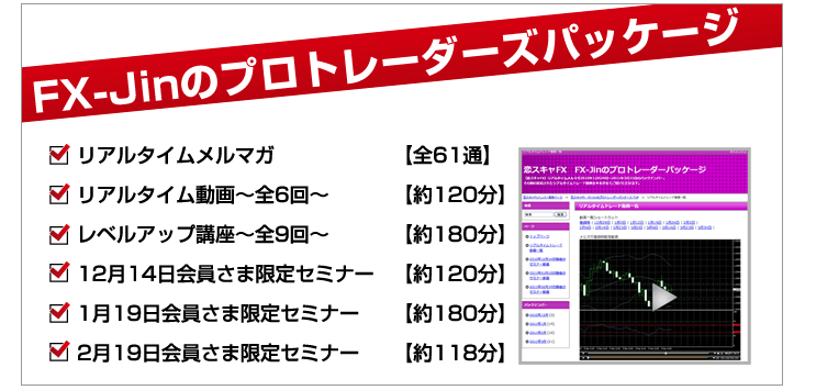 FX-Jinがリアルタイムメルマガでお伝えし続けてきた情報をすべてパッケージ化しました。